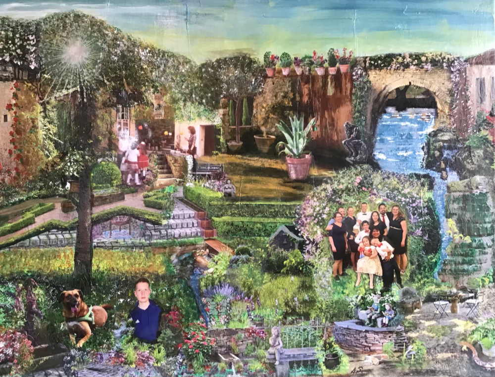 Ylva im Wald 60x 60 cm verkauft, personalisierte Collage - als Auftragsarbeit (verkauft)