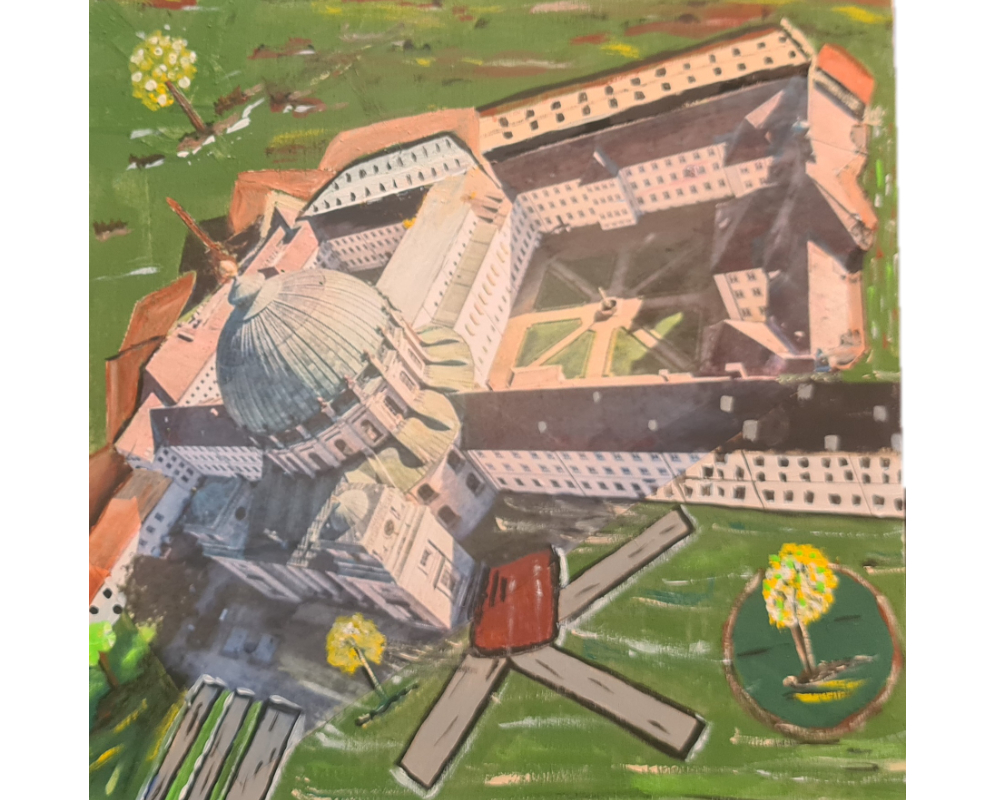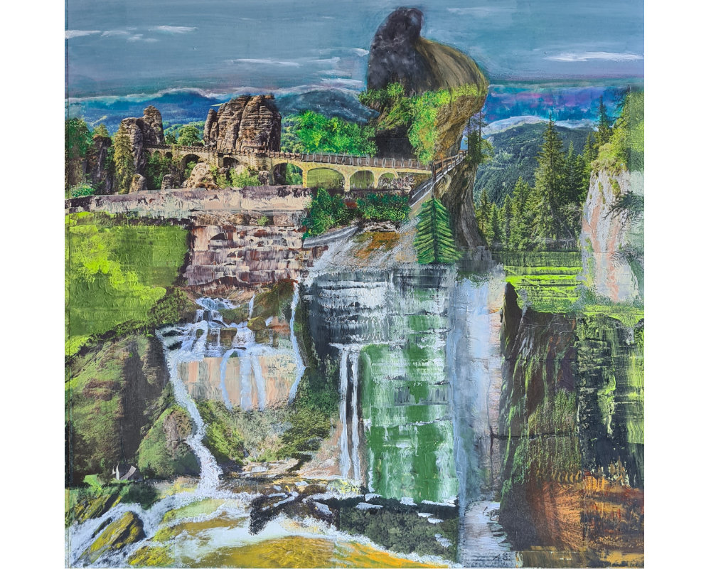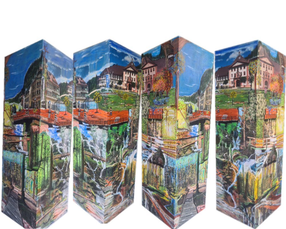 Quader: Erinnerungen aus St. Blasien Größe: 80 x 25 cm Fotos verbunden mit Acryl Technik zu einer Collage