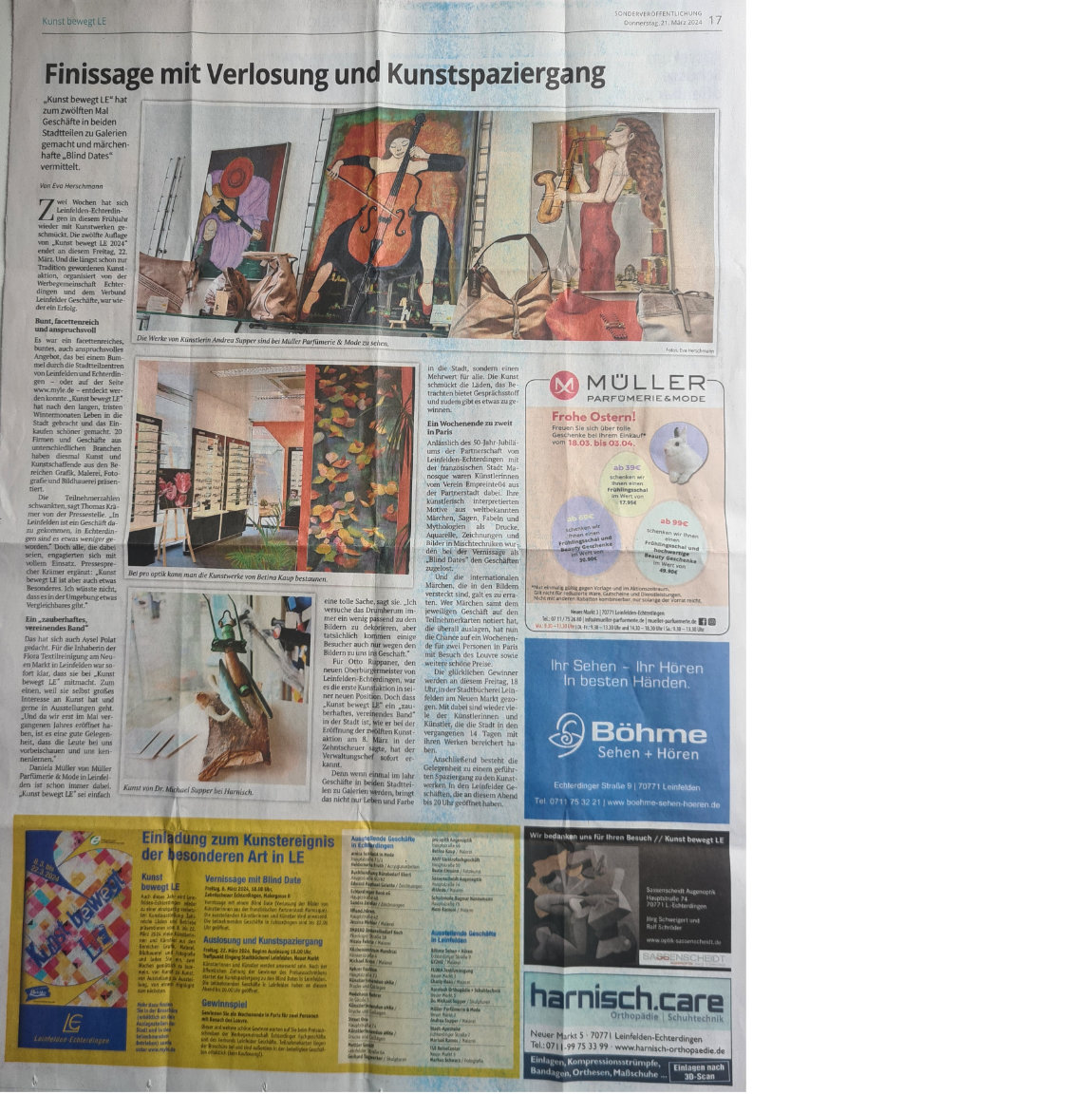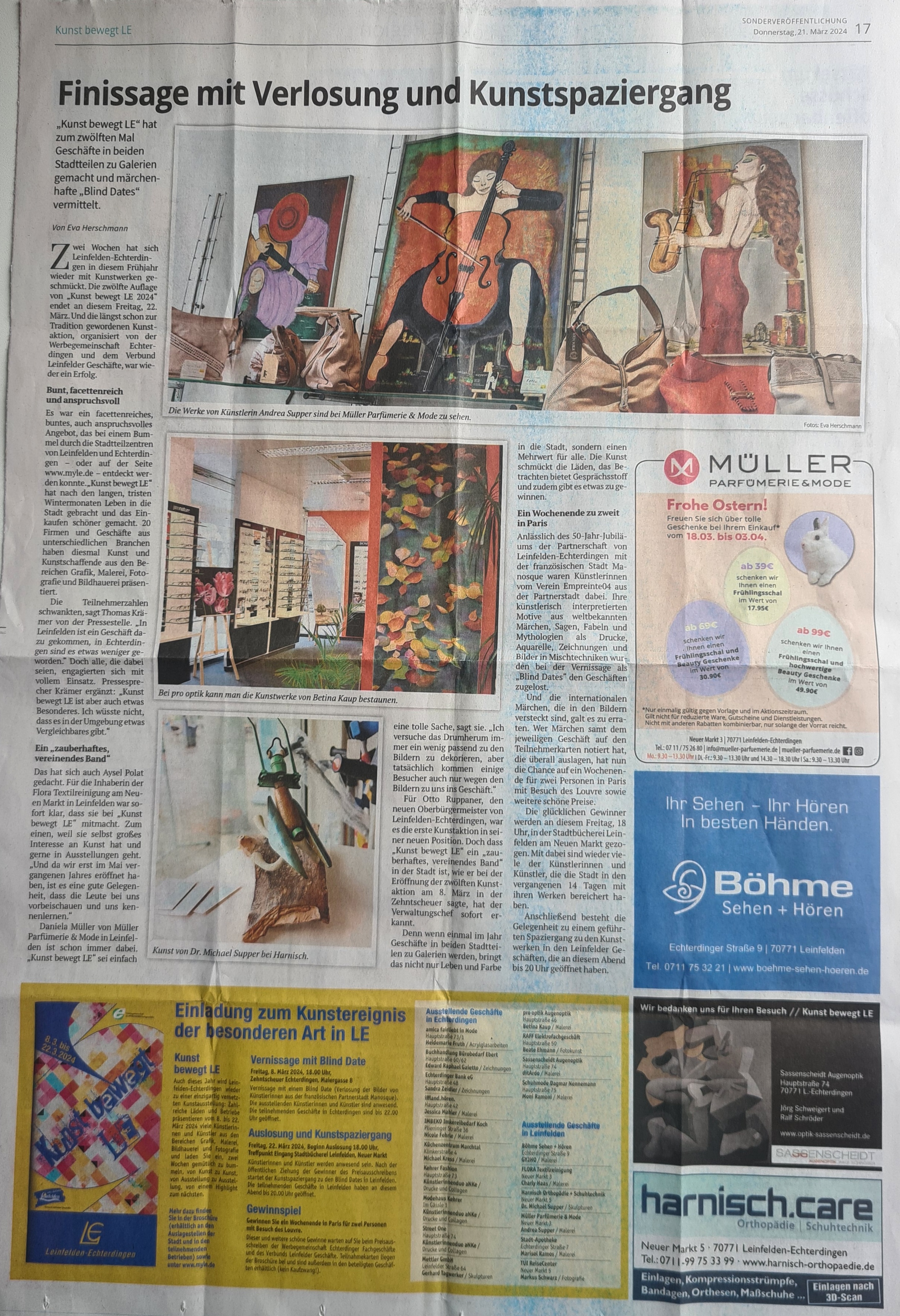 mit anschließenden Kunstspaziergang durch die teilnehmenden Geschäfte in Echterdingen.